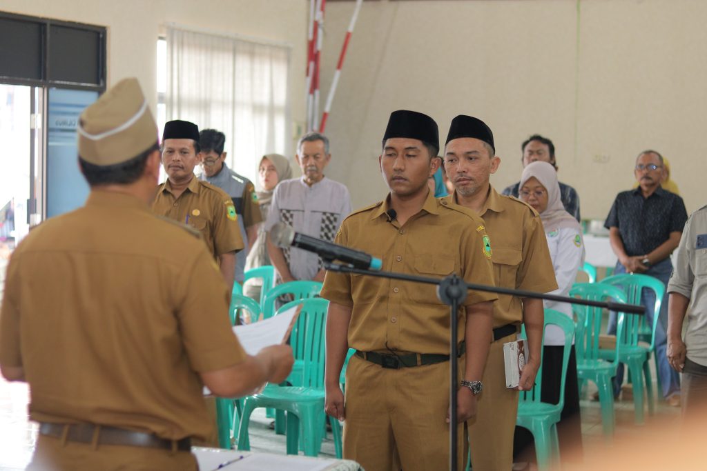 Setelah pengambilan sumpah, prosesi dilanjutkan dengan penandatanganan Berita Acara Pelantikan, penyerahan naskah keputusan, serta pemasangan atribut jabatan sebagai simbol sahnya pengangkatan Kepala Dusun yang baru.